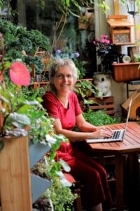 Birgit vom Berliner Bio-Balkon – mehrfach preisgekrönte Balkonbotschafterin aus voller Überzeugung, Autorin und Veranstalterin der bisher 17 Online Bio-Balkon Kongresse.